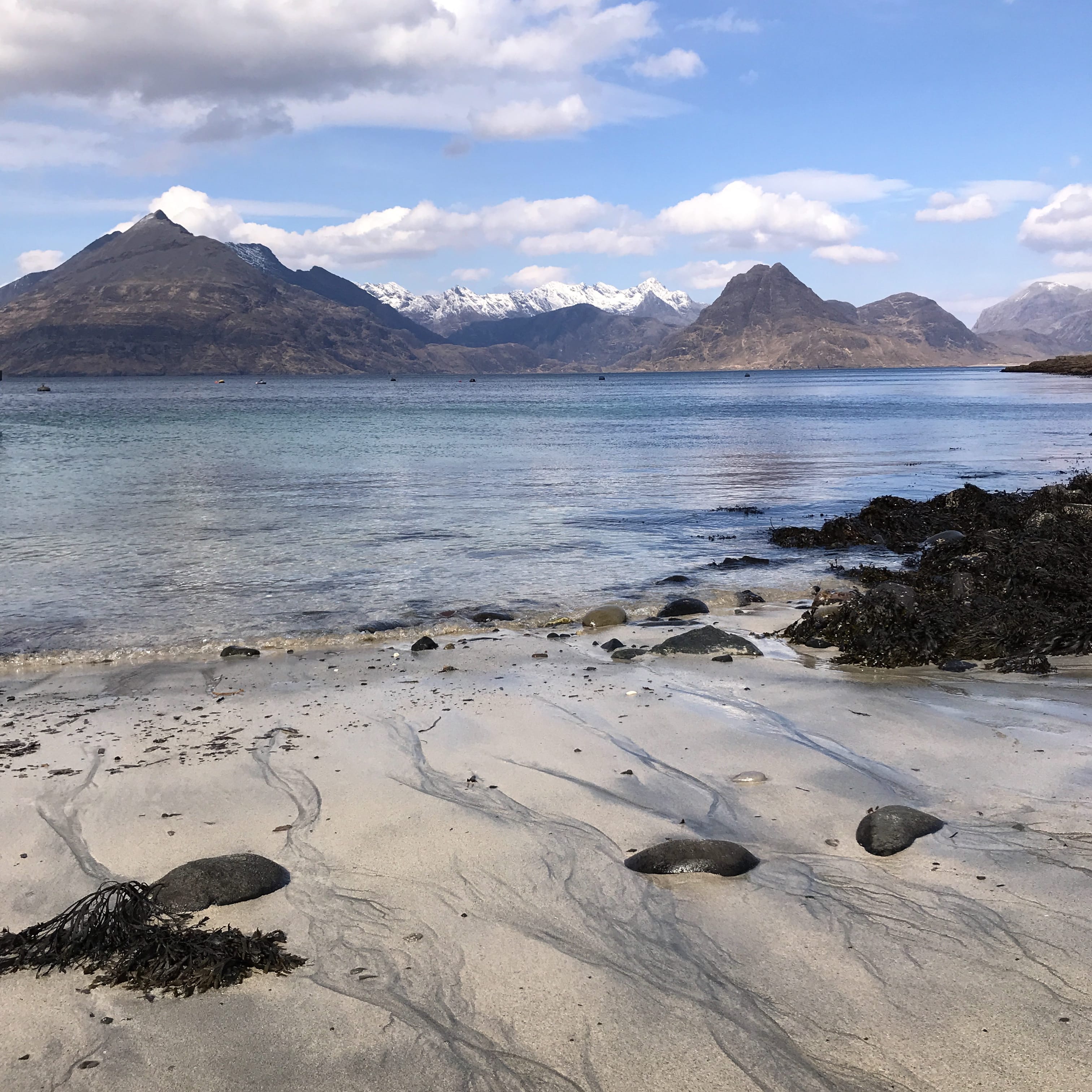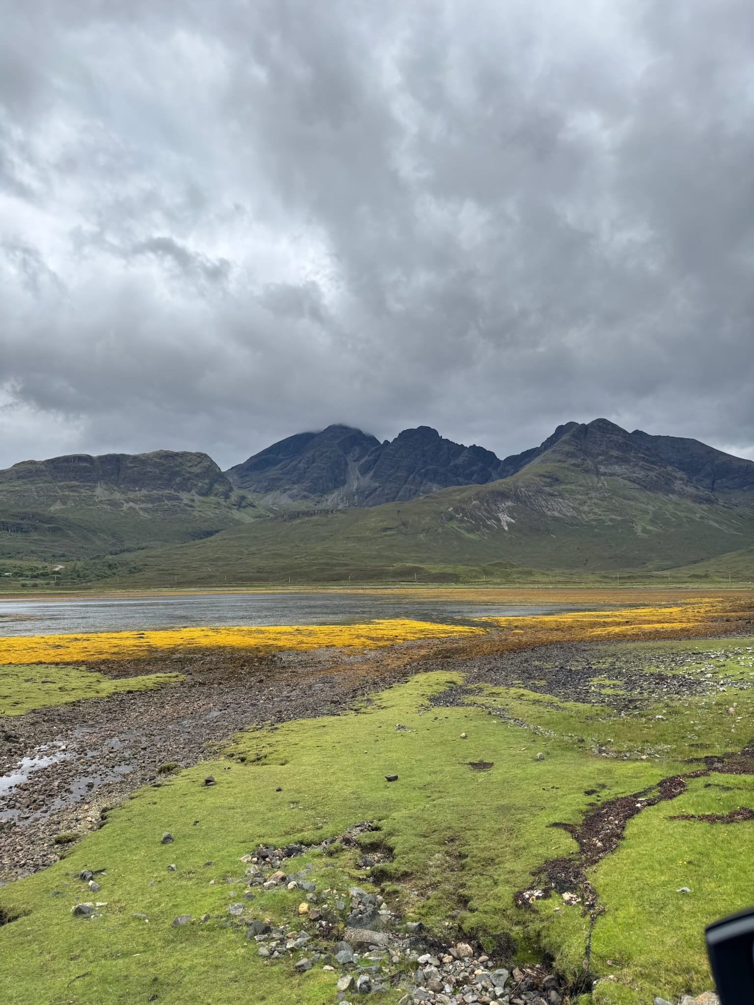 - On our way to the next location we will stop at Torrin, the presence of Blà Bheinn (Blaven), a black Cuillin, transforms the whole landscape. It sits alone, slightly apart from the main Black Cuillin ridge, which makes it stand out even more. From Torrin, you see it across Loch Slapin, its steep, pyramidal shape reflected in the water.