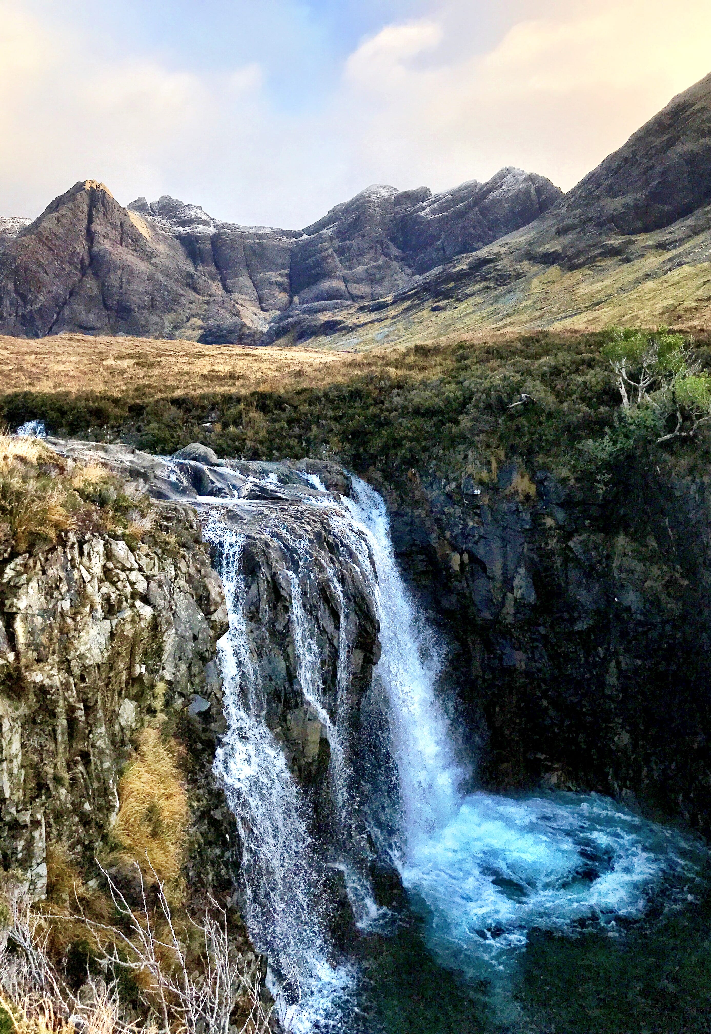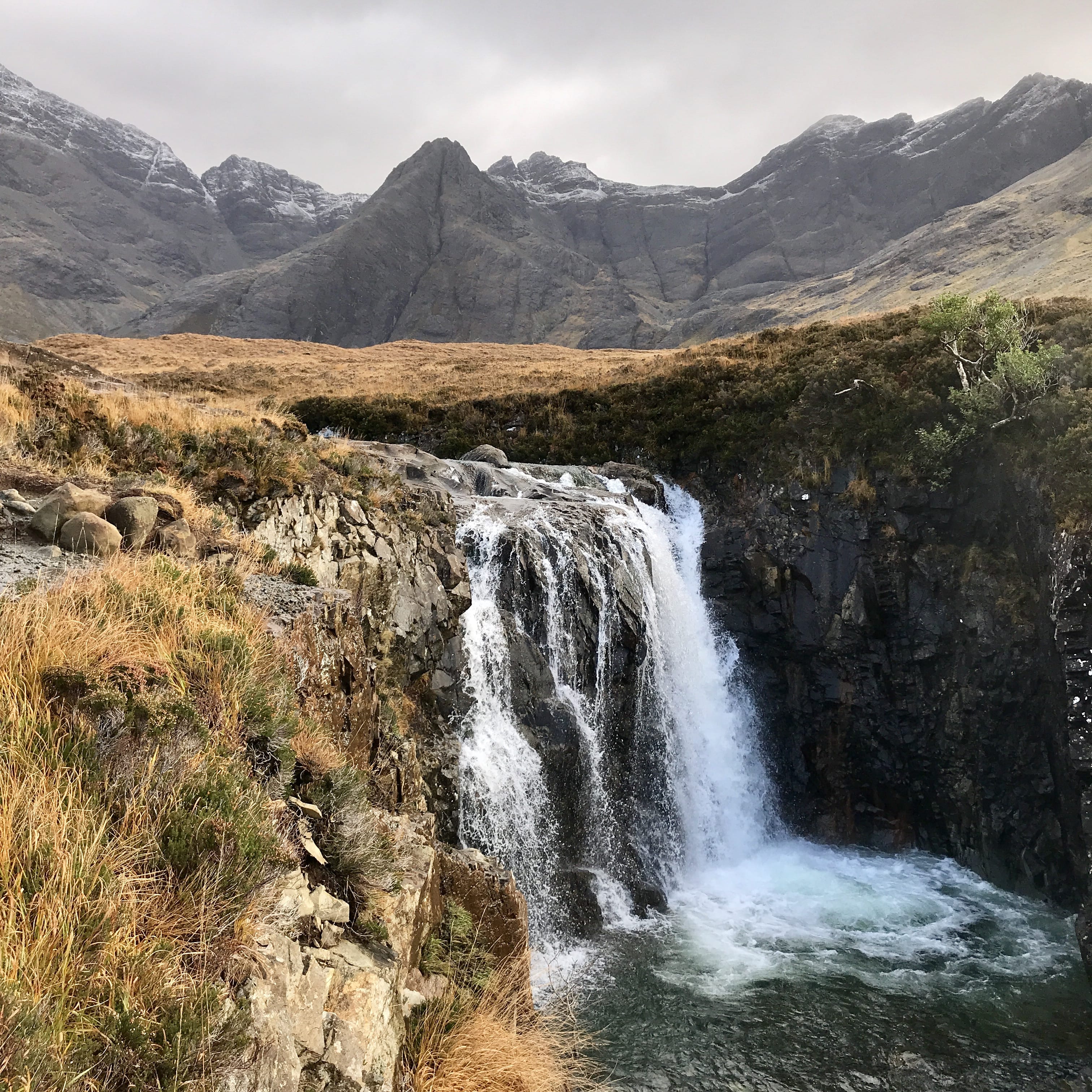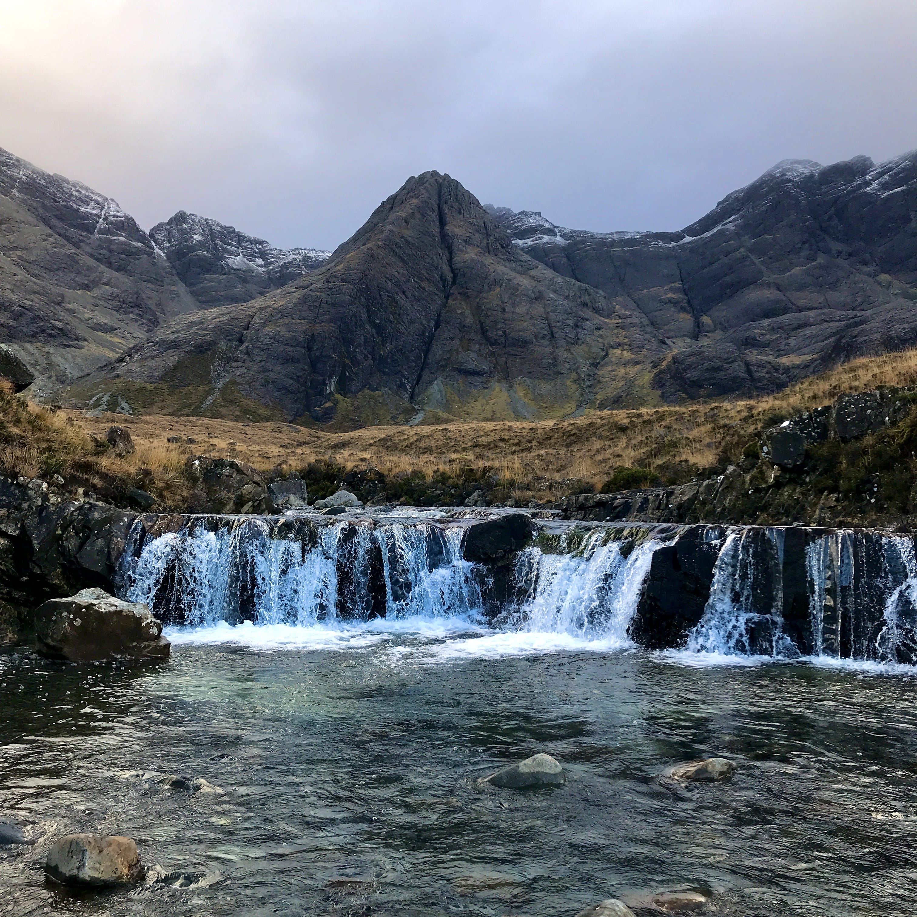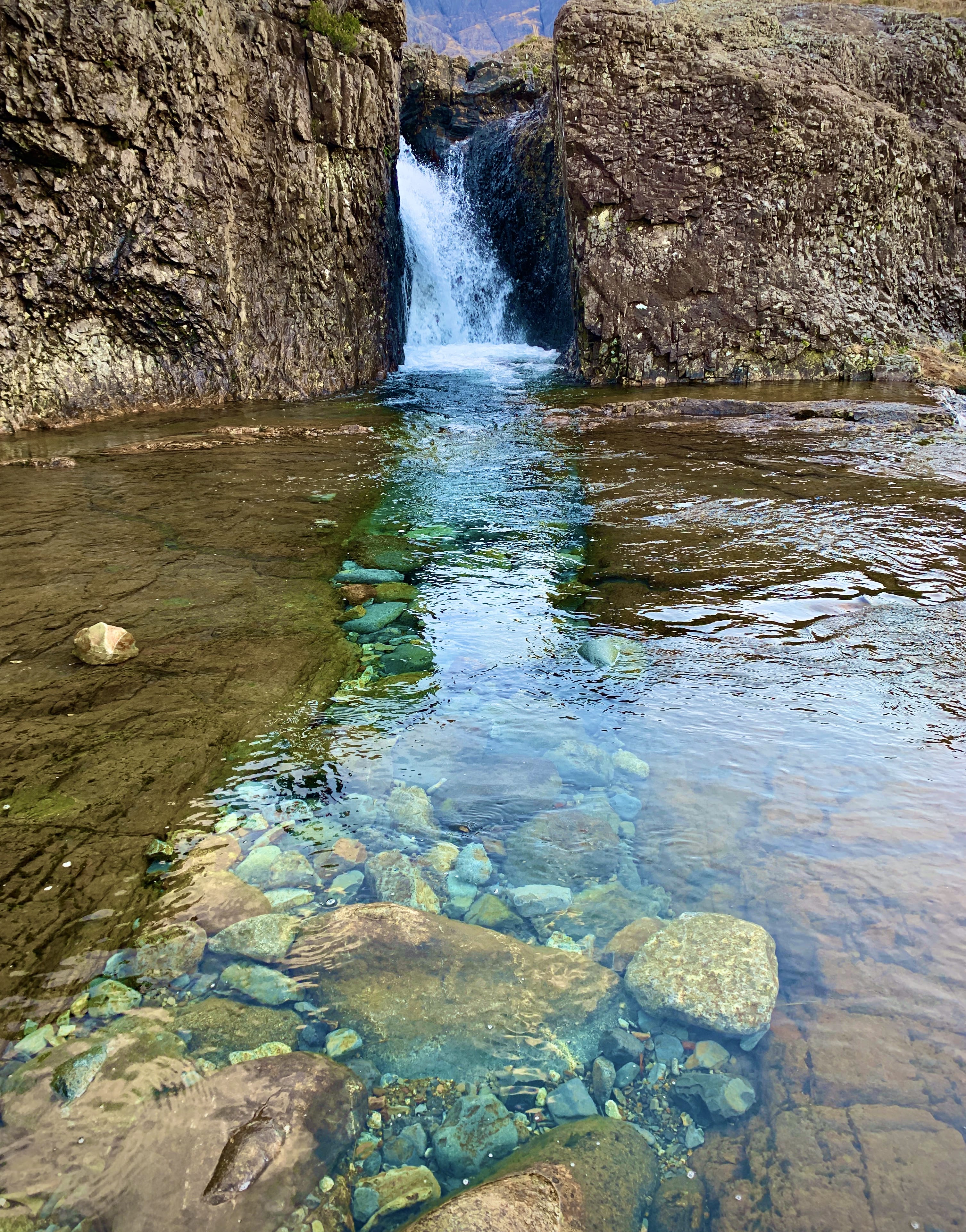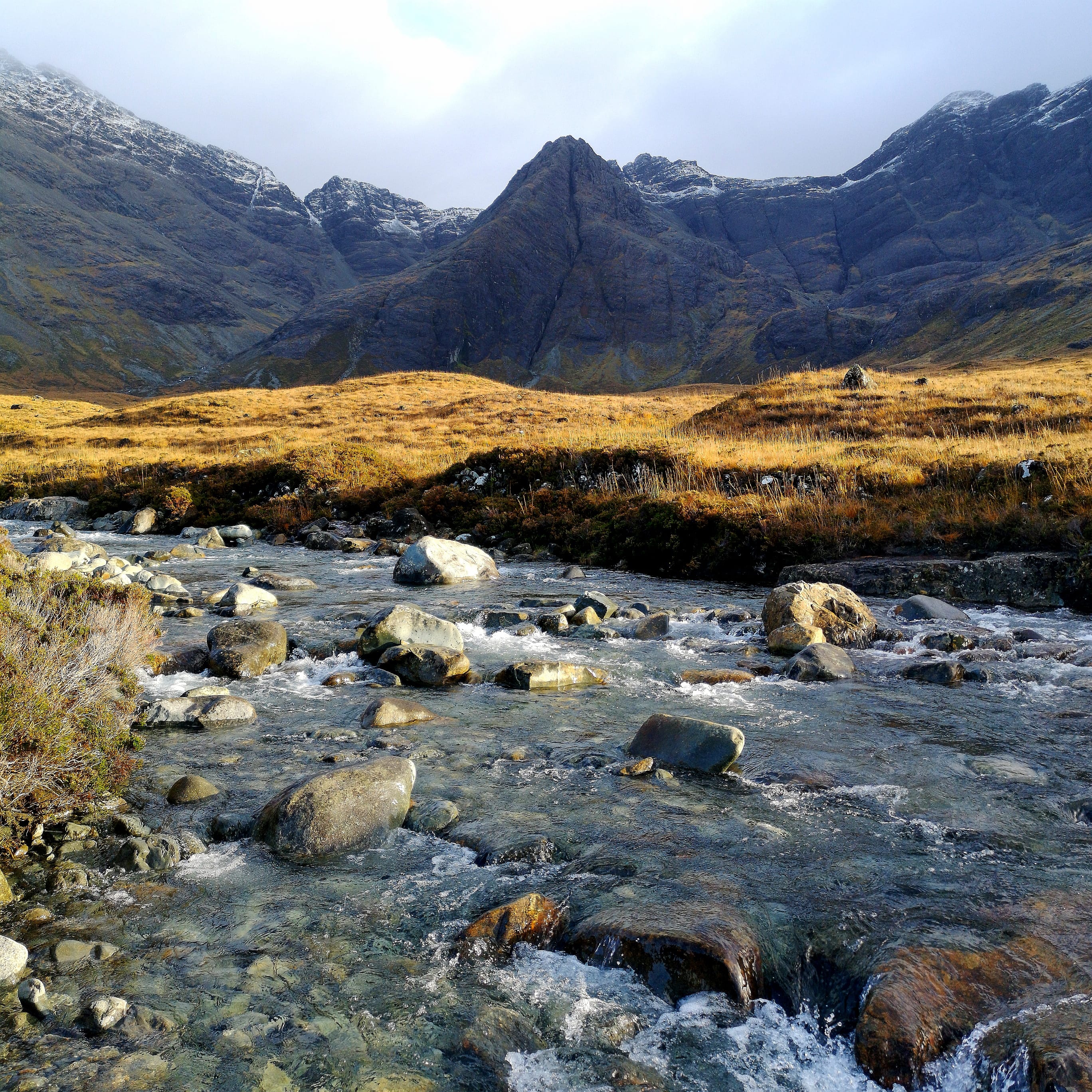 - The walk to the Fairy Pools is one of the most accessible ways to experience the wild beauty of the Black Cuillin. The walk begins at the foot of the Cuillin. A gravel path leads you across open moorland until you meet the River Brittle, which becomes your companion for most of the walk. The path runs alongside and crosses it several times via stepping stones and small bridges. The water is incredibly clear, often tinted blue or green depending on the light and you will soon see a series of crystal-clear pools connected by waterfalls with the Black Cuillin rising steeply behind them.