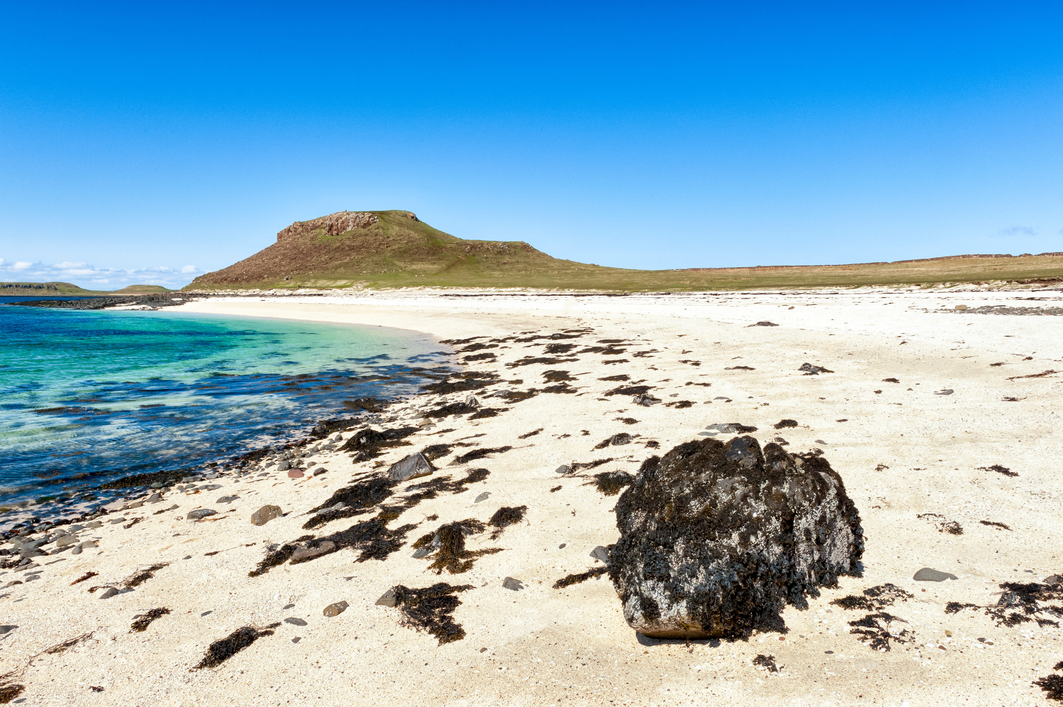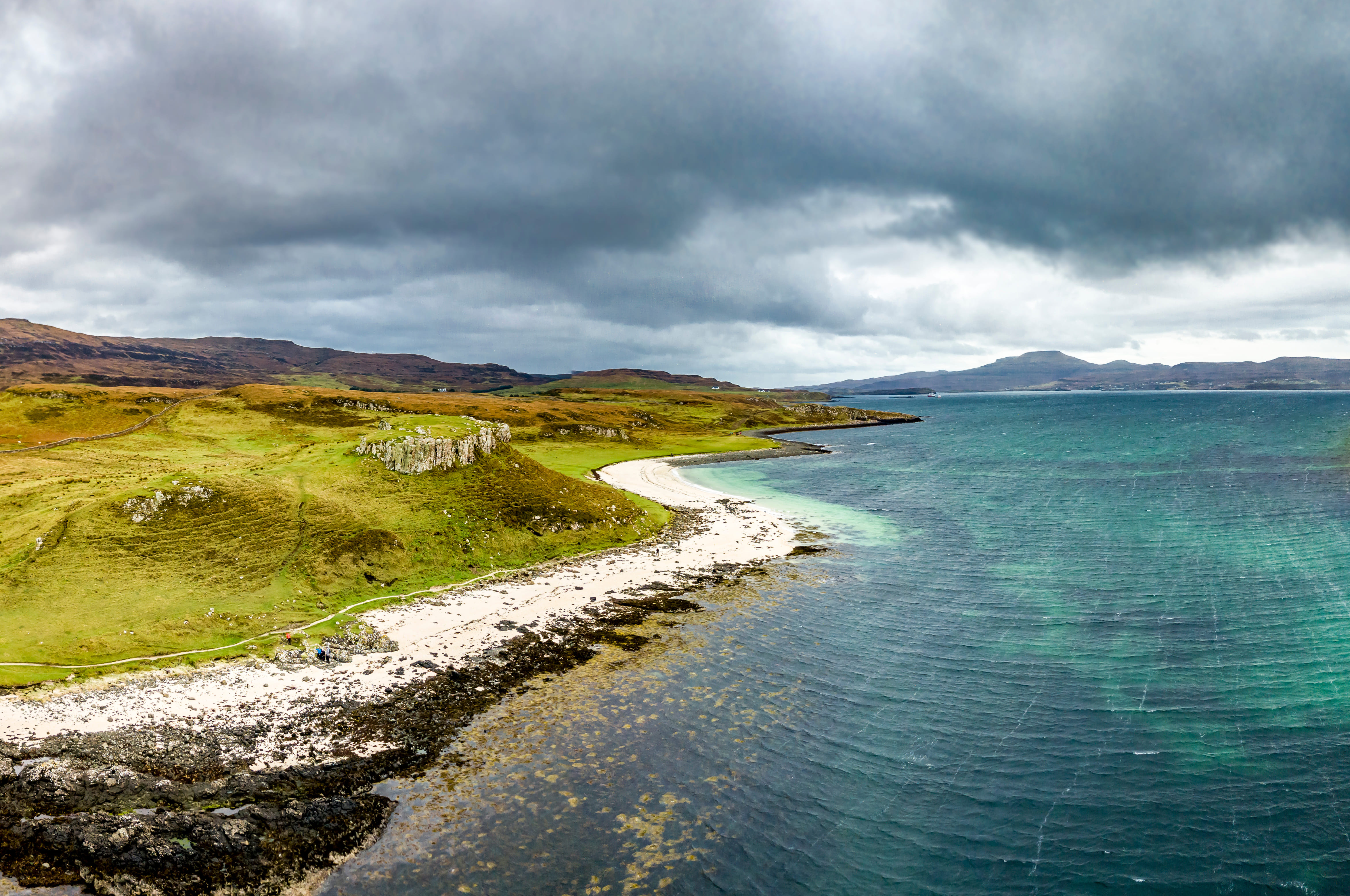 Next a short drive on a spectacular single track road brings us to Coral Beach, a stunning stretch of white sand-like crushed coral. Its crystal-clear, azure blue waters are often compared to the turquoise seas of the Caribbean - just a bit chillier.